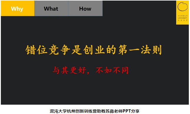 其中,蘇淼老師對“錯位競爭”這個思維模型和在座學(xué)員分享道:錯位競爭是創(chuàng)業(yè)第一法則,市場中的每一個領(lǐng)域幾乎都有巨頭,與巨頭正面競爭的成功率很小。
