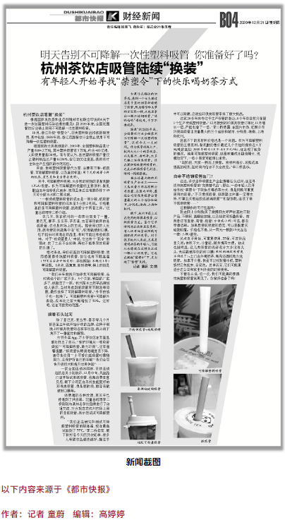 12月31日,《都市快報》刊登了一篇關(guān)于“雙童吸管”報導(dǎo)。在“禁塑令”正式到來之際,“雙童”環(huán)保吸管受到社會各界廣泛的關(guān)注。下面就跟著吸管妞一起去看看吧!