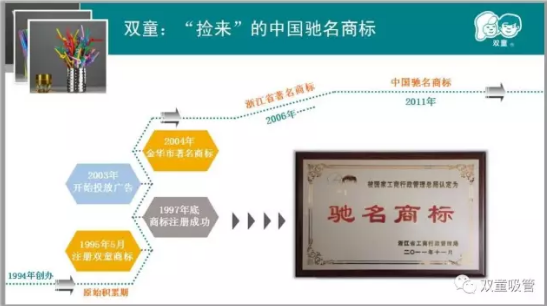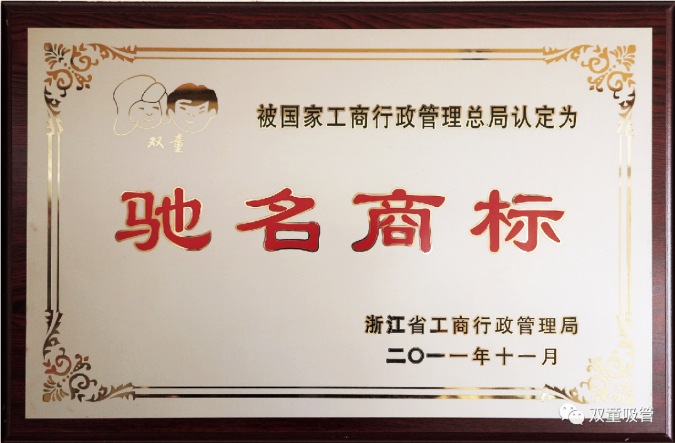 “雙童”商標(biāo)榮獲國家工商總局認(rèn)定的“中國馳名商標(biāo)”稱號(hào),成為了義烏歷史上第八件中國馳名商標(biāo)