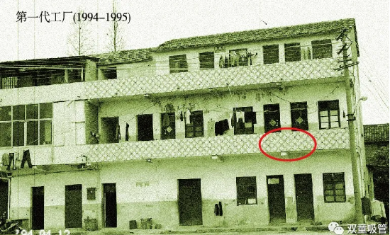1994年4月5日,樓仲平夫妻在當(dāng)時(shí)的義烏市福田鄉(xiāng)寺后盛村租用了兩間兩層(紅圈所示)的普通民房作為生產(chǎn)場(chǎng)地,邁開了《吸管傳奇》創(chuàng)業(yè)的第一步。