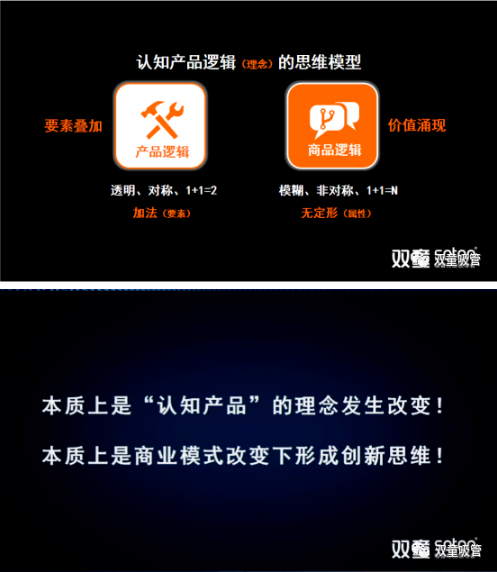簡單來說,產(chǎn)品邏輯是要素的“疊加之和”,是1+1=2,是成本疊加再加上合理利潤的預期值。所以,透明、對稱,你與競爭對手之間是完全的正面競爭。而商品邏輯是非對稱的,它隱含的競爭要素更多體現(xiàn)在人文性和精神性上,如品牌、渠道、技術(shù)和體驗服務上,從而讓競爭對手無法復制,由此產(chǎn)生非對稱競爭,以實現(xiàn)更大的價值創(chuàng)造。