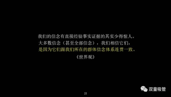 大多數(shù)人的誤區(qū)之一就是把群體間的共識(shí)當(dāng)成真理。在日常生活中,從眾效應(yīng)會(huì)使得我們?cè)趫F(tuán)隊(duì)當(dāng)中,很難保持獨(dú)立判斷;即使團(tuán)隊(duì)信念出錯(cuò),我們也幾乎無法看出團(tuán)隊(duì)在犯錯(cuò);即便我們能夠看出團(tuán)隊(duì)信念的錯(cuò)誤,一個(gè)人的反對(duì)意見在洪流中往往也顯得十分微不足道。有時(shí)候正是從眾效應(yīng),把企業(yè)、創(chuàng)新者、個(gè)人的思想牢牢地禁錮住了。