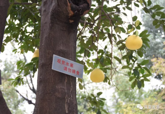 為了“雙童”的生態(tài)和美觀,公司明確柚子是觀賞性水果。成長(zhǎng)過(guò)程中柚子可以一直掛在樹(shù)上觀賞一直到第二年四月,六月份開(kāi)始新的柚子又長(zhǎng)成了,一年掛果十個(gè)月!每棵柚子樹(shù)上都有“觀賞水果,請(qǐng)勿摘食”的字樣,提醒和引導(dǎo)員工不要摘食觀賞水果。