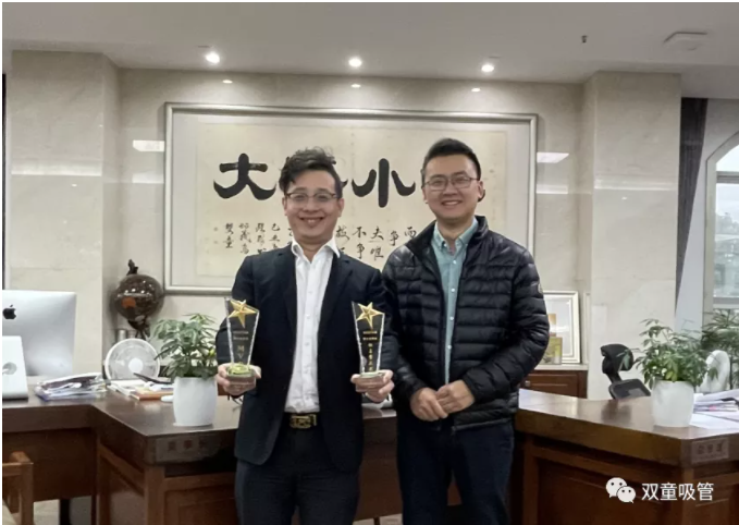雙童為銷售團(tuán)隊(duì)頒發(fā)各項(xiàng)目標(biāo)獎(jiǎng)杯