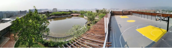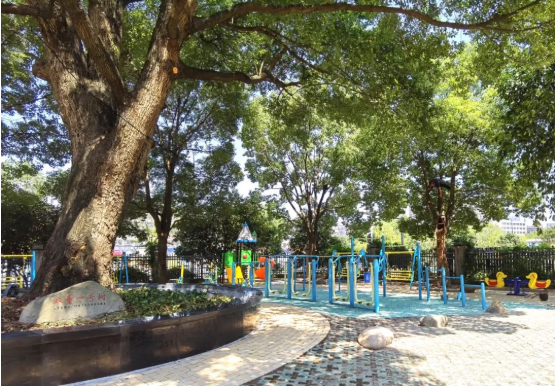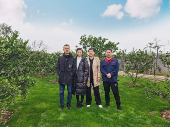 員工和家屬在“雙童”的小花園里散步