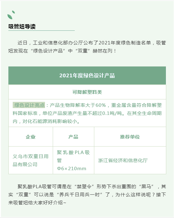 由“雙童”主導(dǎo)起草的《聚乳酸冷飲吸管》國(guó)家行業(yè)標(biāo)準(zhǔn)