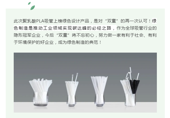 一直以來(lái),“雙童” 沉心打造吸管行業(yè)的“綠色產(chǎn)品”,生產(chǎn)銷售一系列環(huán)保可降解、可循環(huán)吸管,為中國(guó)實(shí)現(xiàn)2030年“碳達(dá)峰”與2060年“碳中和”目標(biāo)做出企業(yè)的貢獻(xiàn)。