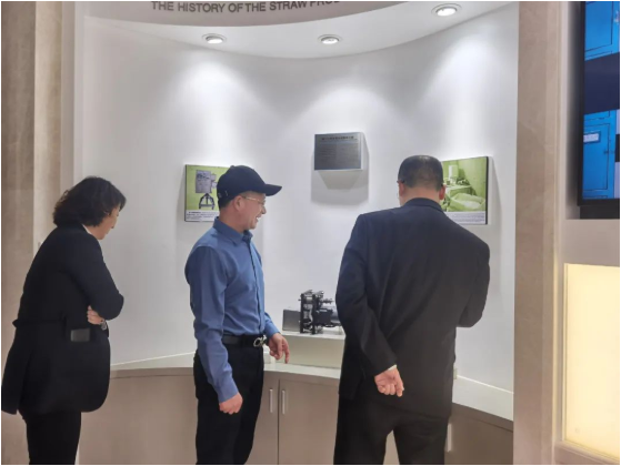 在“雙童”董事長樓仲平的陪同下,許惠春副院長一行來到了中國吸管博物館,一起參觀了吸管產品發(fā)展歷史展示區(qū)、吸管生產技術展示區(qū)、吸管產品形態(tài)展示區(qū)等各類吸管的展示區(qū)域,同時,調研組也了解了“雙童”的技術研發(fā)創(chuàng)新和代表性專利。