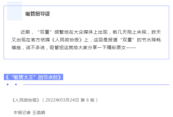 雙童:剛上央視,又見報了!《人民政協(xié)報》生態(tài)專題報道:節(jié)水也能省下大筆錢!