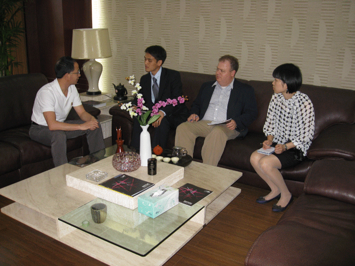 上圖:美國(guó)駐上??傤I(lǐng)事館領(lǐng)事考察公司外貿(mào)情況