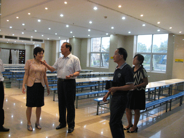 上圖:董事長(zhǎng)樓仲平陪同參觀公司職工餐廳