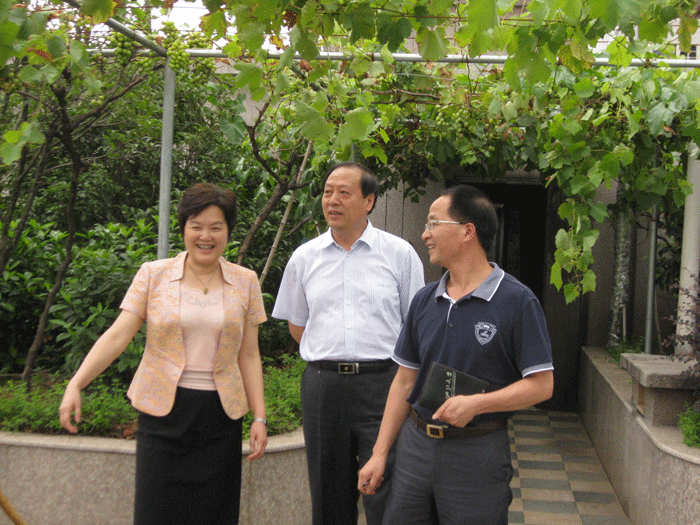 上圖:董事長(zhǎng)樓仲平陪同參觀公司屋頂空中花園