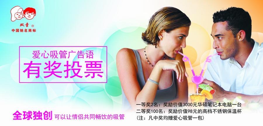 被征集的廣告語(yǔ)將用于我們 “愛(ài)心吸管”產(chǎn)品所有包裝正面的廣告詞。