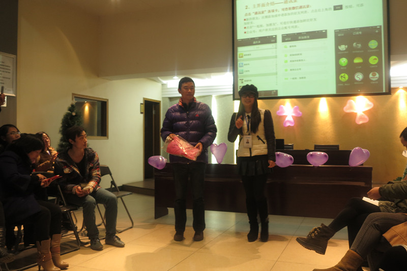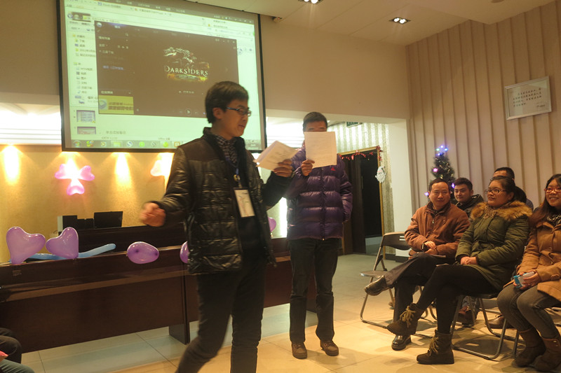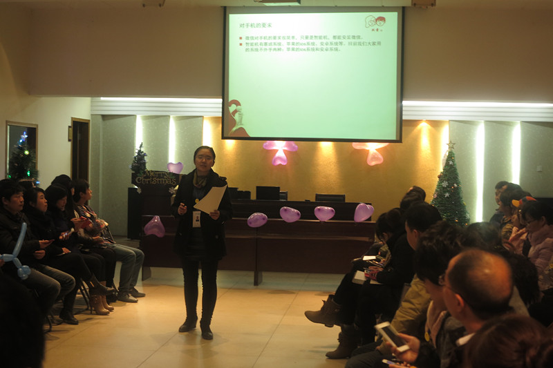 12月23日,每周一次的雙童學(xué)習(xí)會(huì)繼續(xù)在雙童九樓活動(dòng)室舉行。本次的學(xué)習(xí)會(huì)主題是圣誕節(jié),主持人是文宣部的三位“不靠譜”的美女主持人??纯次覀兊膶W(xué)習(xí)會(huì)現(xiàn)場,到處都充滿了圣誕氣息,除了供應(yīng)商友情贊助的十幾顆大大小小的圣誕樹之外,更有幾位“不靠譜”文宣部美女純手工制作的雙童版圣誕樹,現(xiàn)場布置的很活潑、很溫馨有木有!