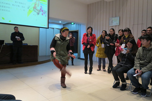上完了課之后,萬眾期待的小游戲終于開始啦!這次的游戲獎品可是由張經(jīng)理從國外帶回來的哦!第一個游戲是踢毽子,看大家踢的,就快要飛起來啦!樓總也童心未泯,輪不到上臺表演,就偷偷拿著個毽子去臺下玩了起來。最后,由我們車間的美女獲得了這次游戲的冠軍,話說小編也好想知道她獲得的獎品是啥呀!