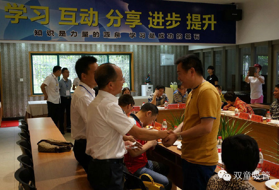 慶典開始前的會場,樓總再次與參與慶典的客戶,一一握手致敬,并互相交換名片。參與慶典的客戶有來自廣州的,來自武漢的,來自昆明的,來自湖南的、來自湖北的、來自天山腳下烏魯木齊的……感謝每一位來自天南地北的珍貴嘉賓大熱天放棄工作來為雙童鼓掌吶喊。20年風(fēng)雨歷程,感謝你一路相伴,感謝每一位關(guān)注我們的朋友。