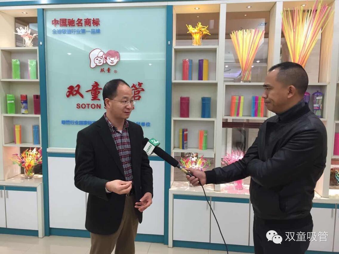 在3月27日的義烏工業(yè)轉(zhuǎn)型大會上,李一飛書記和盛秋平市長對雙童吸管的表揚溢于言表,2月28日早上,義烏電視臺的兩位記者也是來到了雙童,從雙童給轉(zhuǎn)型會議的影響力入手,結合雙童目前的電子商務、展會發(fā)展,對當家人@樓仲平 、銷售部主管朱芳珍、電商部主管銷售部門的兩位管理人員進行了采訪。