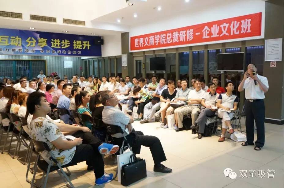 原來,當晚的學習會聽課人員中,除了我們雙童本來要來參加的管理層以外,還有世界義商學院文化班的四五十位學員們??蓜e看說是學員,他們可都是由許多的企業(yè)界前輩、公司老總及業(yè)界精英組成的哦!所以,學習會一開始,熱情的雙童人們也用雷鳴般的問好和掌聲向他們表示了歡迎!