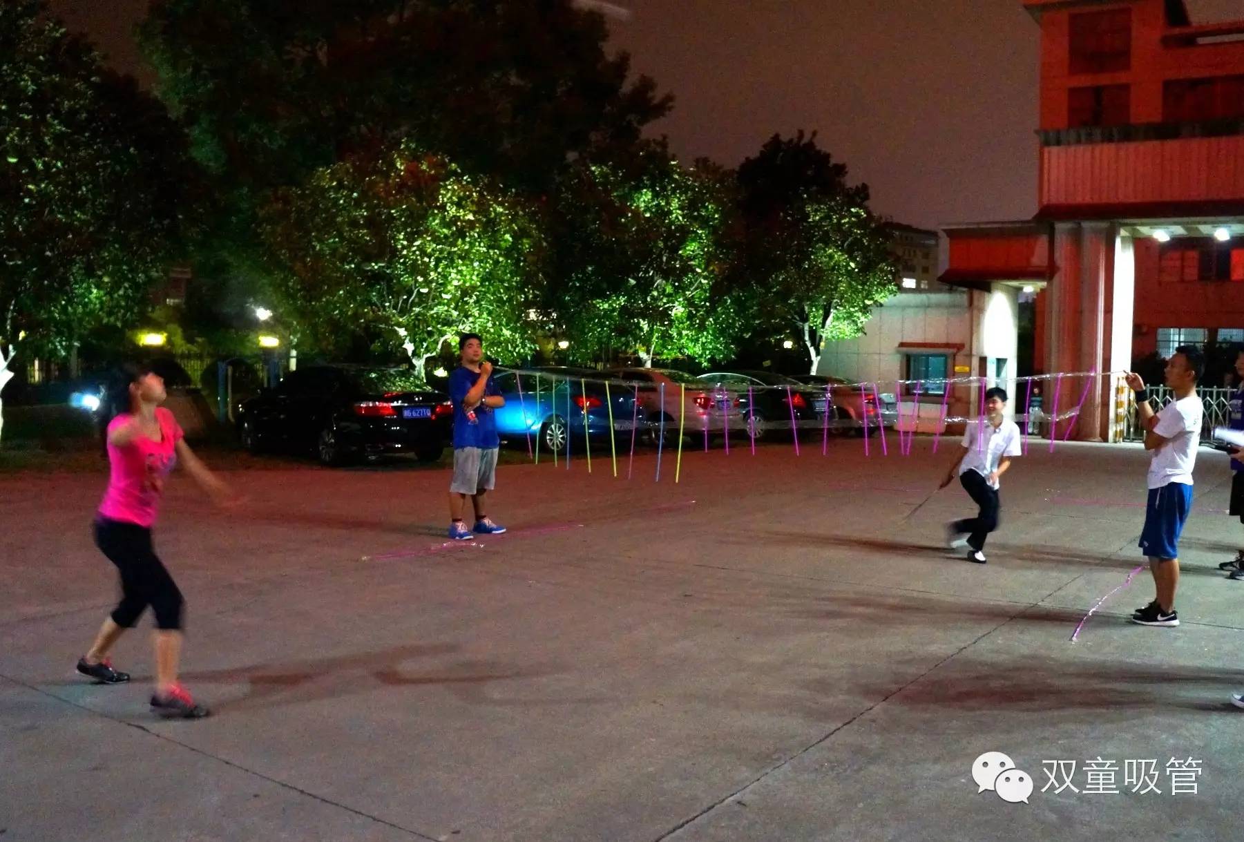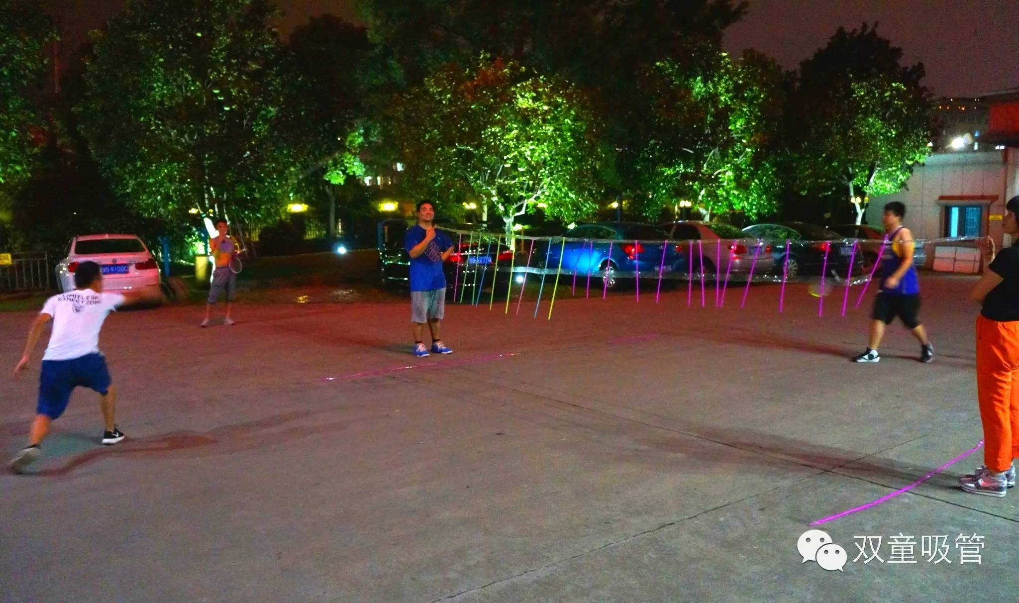沒有專業(yè)場地,但我們有吸管;沒有專業(yè)場地,但我們有吸管。我們特地采用車間的長吸管廢料粘成彩色的場地邊線,用吸管廢料和膠帶粘成吸管球網(wǎng)。就這樣,我們因地制宜,就地取材,在行政樓前創(chuàng)造了一個羽毛球的吸管場地,社員們都覺得咱們確實是雙童的人吶,如此熱愛吸管。