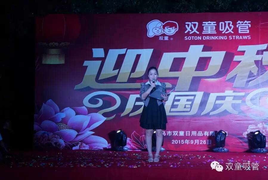 9月26日晚,在雙童廠區(qū)內(nèi),我們舉辦了一場盛大熱鬧的“迎中秋,慶國慶”文藝晚會,全廠員工都匯聚臺下參與晚會互動,節(jié)目那是相當精彩,類型那是相當?shù)呢S富!作為主持人和參演人員的吸管妞,經(jīng)過兩天的修養(yǎng),迫不及待地想和大家分享回顧一下節(jié)目的精彩盛況啦!