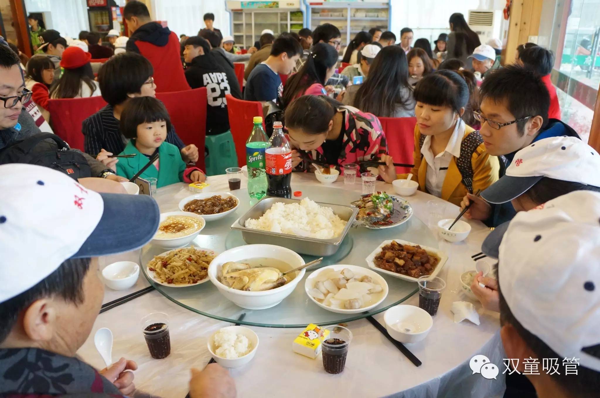 雖然時間還早,由于下午還要去往神仙居拜訪神仙,所以我們就趕緊去填肚子啦!于是,雙童又一次承包大酒店,這景象,熱鬧的呀?。?!