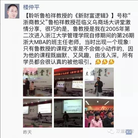 臺(tái)上激情澎湃,深入淺出,“指點(diǎn)江山”猶若定;臺(tái)下群情激昂,掌聲如雷,如沐春風(fēng)展笑顏。這是昨天在義烏市圖書館報(bào)告廳的一幕。素有“浙商教父”、“浙大名嘴”等美稱的浙大教授、管理學(xué)大師魯柏祥蒞臨義烏,為義烏六大行業(yè)的老板們開展關(guān)于《新財(cái)富邏輯》主題的講座。