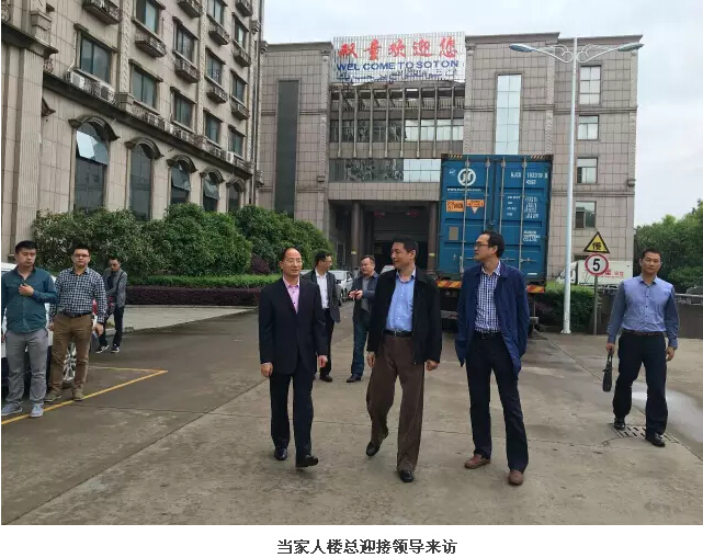 由于領(lǐng)導們還要去參觀別家企業(yè),所以在參觀完車間后,他們就要和當家人樓總說再見了。當家人樓總也熱情地同他們一一握手,并邀請他們有機會再來雙童做客!