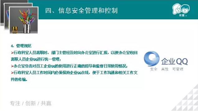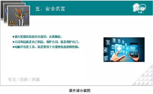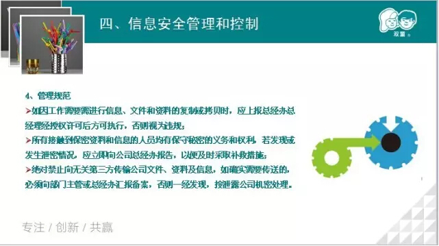親愛的雙童粉絲們,你們的公司注重信息安全嗎?吸管妞以前并不覺得信息安全多么重要,但是經(jīng)過昨晚的學(xué)習(xí)會,吸管妞總算明白啦!下面,吸管妞就和大家講講昨晚上,我們的辦公室主任吳小彬擔(dān)任講師,為我們所有行政員工分享的《公司信息安全管理規(guī)范》課程吧!