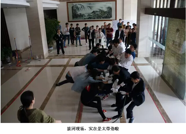 最激動(dòng)人心的拔河項(xiàng)目就要開始啦!這次我們采用的是左右端拔河的玩法,是不是很新奇呀?看看現(xiàn)場(chǎng)觀眾的反應(yīng)你就知道啦!一二三一二三,隊(duì)員們喊著口號(hào),奮力拼搏,看得吸管妞都想放棄主持上場(chǎng)練練手呀!