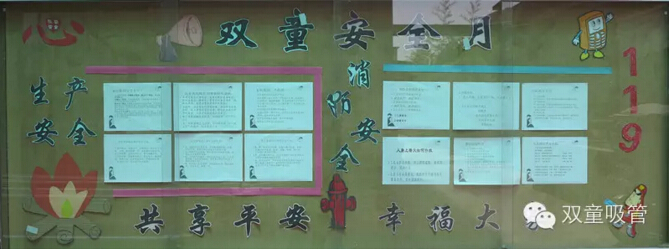 為了讓大家增強(qiáng)安全意識(shí),防患于未然,我們的文宣科分別用黑板報(bào)、軟木板、員工活動(dòng)等形式,用通俗易懂的語(yǔ)言,介紹了有關(guān)于企業(yè)消防安全、企業(yè)生產(chǎn)安全等一系列基本的安全小常識(shí),大大提高了雙童員工對(duì)于安全問(wèn)題的認(rèn)知!