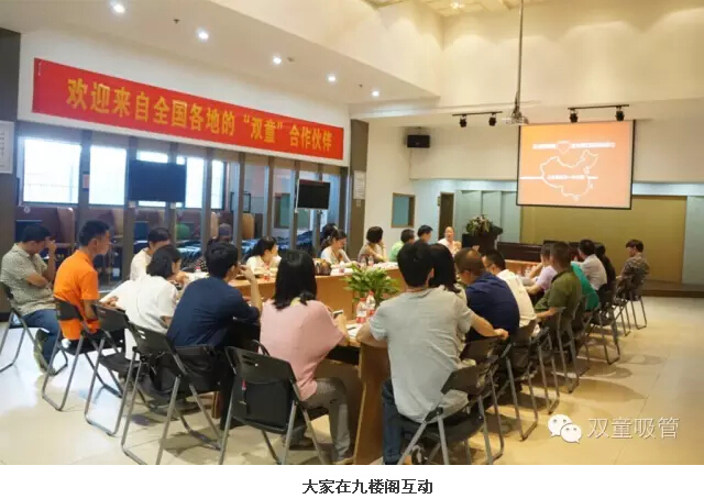 參觀后,大家回到九樓閣就座,對“雙童”的精細化管理進行了深入的探討和互動。當家人樓總詳細地向客人們展示了支撐“雙童”的各類管理文件,并講述了“雙童”一路走來的兩個五年發(fā)展規(guī)劃,強調(diào)了員工教育在雙童是如何落實及其重要性。