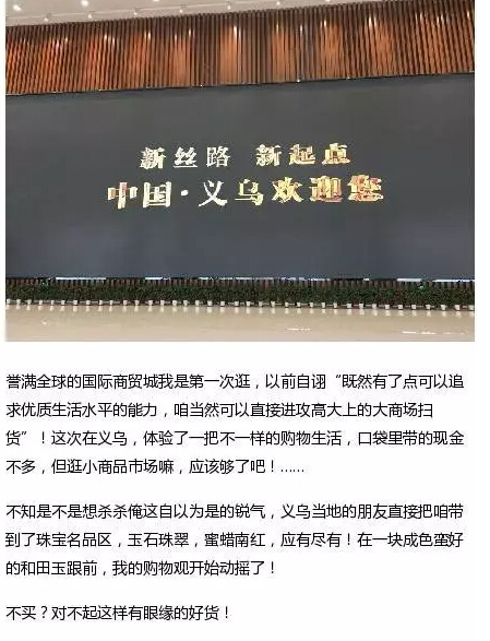 6月2日,“雙童”來了幾位貴客,有微博紅人@傳媒老王 ,也有著名作家蘇芩。當家人樓總向來喜歡交“網(wǎng)友”,見到幾位大咖更是熱情接待。這不,作家蘇芩在回去后,在微博上寫了一篇關于義烏的文章,里面也重點提到了“雙童”的工匠精神和精細化管理呢!下面妞就把這篇文章照搬過來,和大家一起分享!