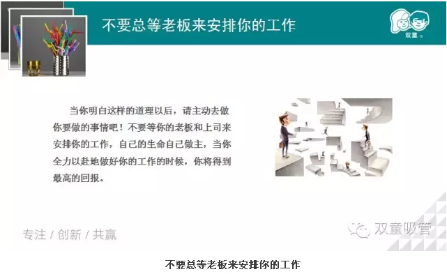 沒有一種工作是錢多,事少,離家近的,我們只有提升自我,做好自己的工作才能獲得最高的回報,那我們到底該怎么做呢?接下來妞就放上幾張PPT和大家共享吧!