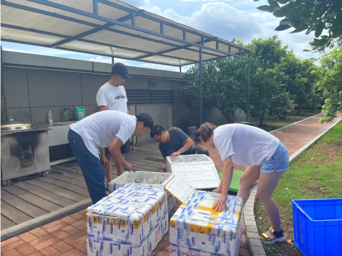 抓住他們真是費(fèi)了不少勁!在經(jīng)過后勤小姐姐們的細(xì)心消毒后,終于可以投放啦,看著一袋又一袋塑料網(wǎng)被解開,小甲魚們紛紛扎入池塘當(dāng)中。吸管妞已經(jīng)默默期盼著來年收獲一大堆甲魚蛋啦~~