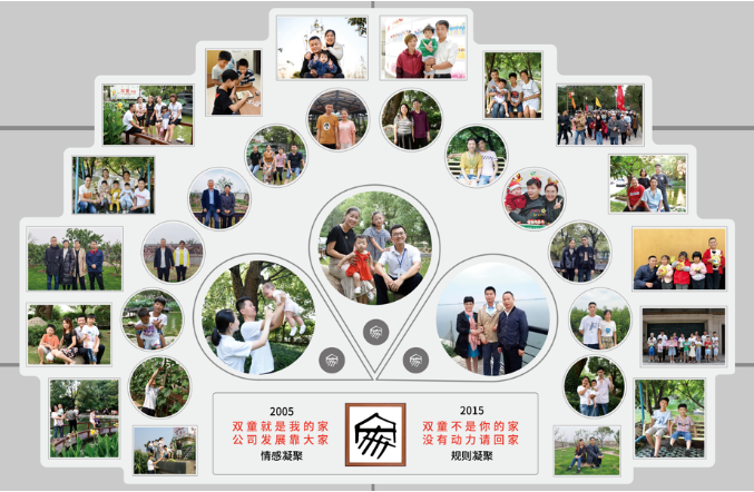 雙童早期團(tuán)隊(duì)的很多成員,都是在公司內(nèi)部找到自己的人生伴侶,生兒育女、組成一個(gè)個(gè)小家庭,逐漸形成雙童特色的“家文化”。在這樣的企業(yè)文化下,很多員工早已把公司當(dāng)成了“第二個(gè)家”。
