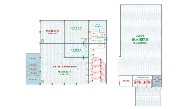 在這里面,最典型的要數(shù)廠區(qū)的廢水收集過(guò)濾沉淀處理系統(tǒng)和中水分質(zhì)供應(yīng)節(jié)能降耗系統(tǒng):前者是將廠區(qū)內(nèi)所有生活廢水進(jìn)行收集、過(guò)濾、沉淀及生物吸附處理;后者則將廢水處理后形成的中水用作洗手間、綠化澆灌、馬路沖洗等。