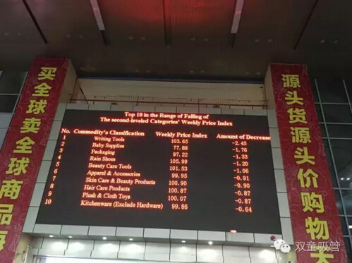 義烏國(guó)際商貿(mào)城內(nèi)進(jìn)口館內(nèi)的商品價(jià)格指數(shù)電子顯示屏