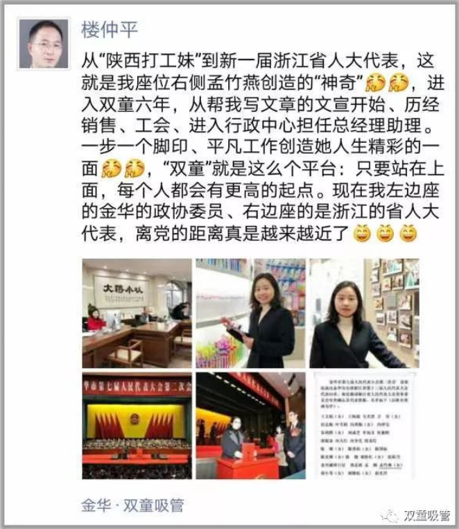 2010年10月,21歲的陜西打工妹孟竹燕來到義烏闖蕩,應聘后進入“雙童”擔任文宣部微博管理員一職。實際上,當時的制造業(yè)企業(yè)中鮮少有專門從事新媒體的崗位,而“雙童”樓仲平卻認知到新媒體運營和品牌推廣對企業(yè)宣傳的重要性,重視微博平臺運營,并將當時的微博管理員孟竹燕帶在身邊手把手培養(yǎng)。