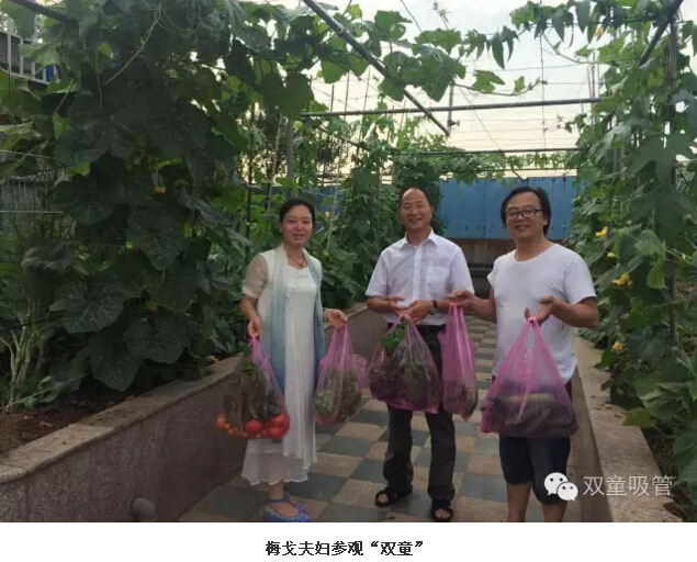 參觀完樣品室,樓總帶我們上九樓露臺雙童菜園,上下兩層兩千平米的樓頂,滿滿種了絲瓜、番茄、長豆、木耳菜、生菜、辣椒還有葡萄等數(shù)十種蔬果,郁郁蔥蔥像個小農(nóng)場,樓總走入菜園給我們摘了絲瓜、黃瓜、茄子,夫人早在二樓摘起來圣女果,看她吃得滿口香甜的樣子!真是醉了!早聽過樓總利用樓頂改造種菜,滿足自身常年需求,樓頂一樣經(jīng)過精心設(shè)計、防漏處理后堆上一米二的泥土,種一年四季蔬果,用企業(yè)里砍伐下來的樹枝碎屑和剩菜飯等進行發(fā)酵,幾個月后成為蔬果種植的最環(huán)保的有機肥!