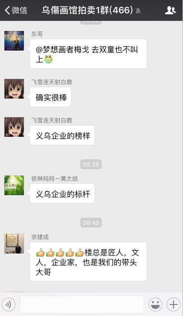 他也建立了書畫作品微拍群來支持義烏藝術(shù)的發(fā)展,每天在微信拍賣一幅畫,零元起拍五百封頂,受到了大批民眾的狂熱追捧,也吸引了不少知名書畫家加入,規(guī)模及影響力不斷擴大,被中宣部黨建辦公室翁淮南先生譽為“開創(chuàng)拍賣先河”!