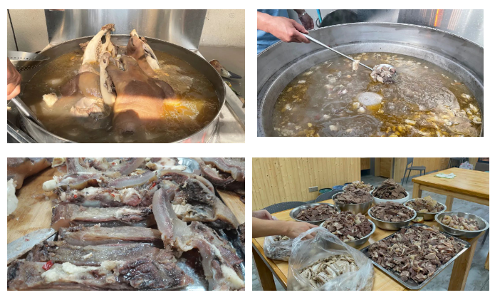 這回聚餐餐桌上的主角是——兩只牛頭!這可足足有上百斤,聽起來是不是很過癮呢!