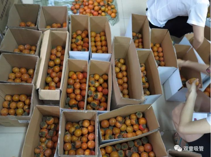 一顆顆新鮮的柿子,被放入框內(nèi)