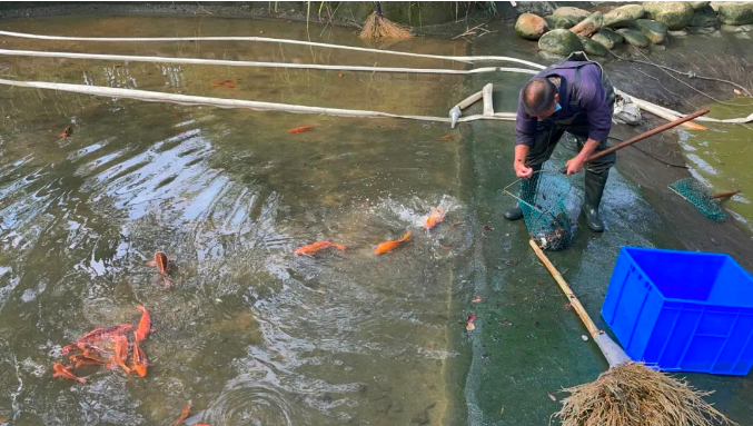 把錦鯉們輕輕放到清水中,