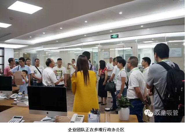 參觀的第二站,是我們的辦公區(qū)?;诰?xì)管理的需要,我們辦公室都是今年最新改造裝修完成的哦!細(xì)膩簡(jiǎn)約、極致精細(xì)的辦公環(huán)境里,七八十號(hào)行政員工都在這里進(jìn)行集中辦公,連當(dāng)家人樓總和幾位高層領(lǐng)導(dǎo)都從獨(dú)立辦公室里解放出來(lái),坐在一起辦公啦!看到這樣的辦公室,大家都紛紛稱贊“雙童”的和諧開放辦公氛圍。