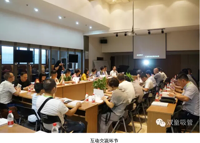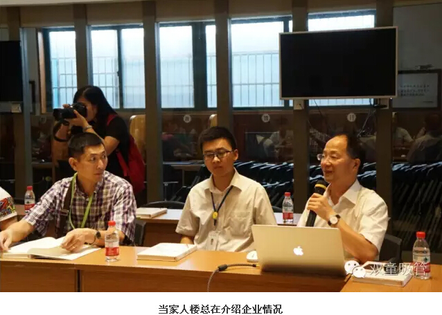 參觀后,大家也來(lái)到了九樓閣,與兩位當(dāng)家人進(jìn)行深入交流,互動(dòng)提問。首先,當(dāng)家人樓總圍繞“雙童”的發(fā)展歷程和經(jīng)營(yíng)理念進(jìn)行分享,同時(shí)介紹了“雙童”的創(chuàng)新工作和五年發(fā)展規(guī)劃。