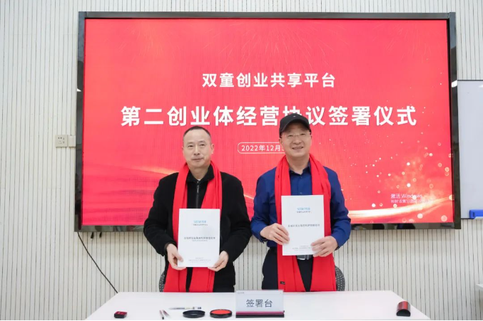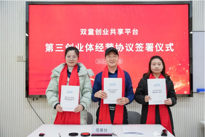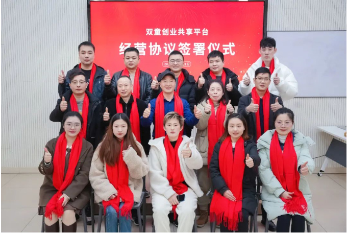 “雙童創(chuàng)業(yè)共享平臺(tái)”經(jīng)營(yíng)協(xié)議簽署儀式合影