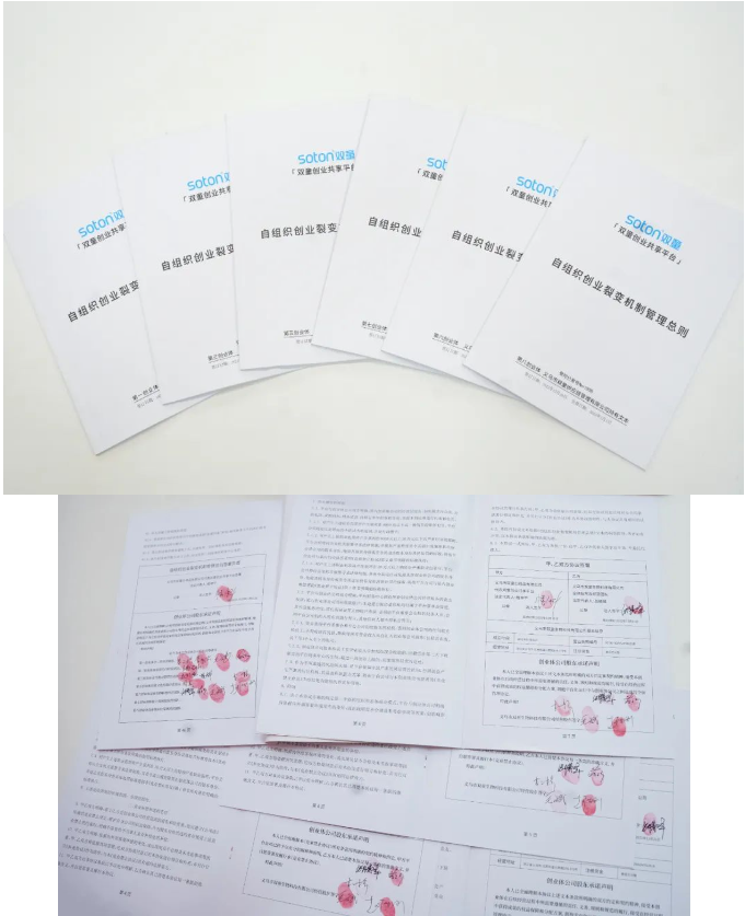 接下來(lái),就是激動(dòng)人心的經(jīng)營(yíng)協(xié)議簽署環(huán)節(jié)。所有創(chuàng)業(yè)體總經(jīng)理及股東依次上臺(tái),與樓仲平一同簽訂協(xié)議!而二次迭代的《自組織創(chuàng)業(yè)裂變機(jī)制總結(jié)》也代表著“雙童創(chuàng)業(yè)共享平臺(tái)”正式邁入2.0的全新時(shí)代!