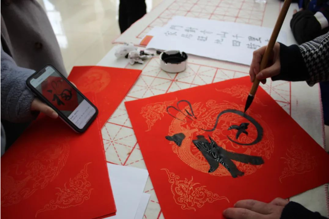 活動現(xiàn)場人太多了,書法老師都要寫不過來了