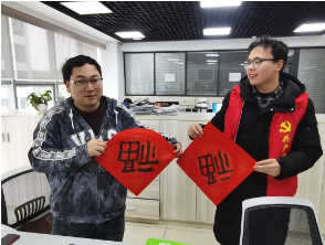 為了讓更多人感受到這樣的溫暖,雙童黨支部書記張國俊帶領(lǐng)支部黨員一起送對聯(lián)上門,給在崗位辛勤工作的員工送上新春祝福。“手寫的春聯(lián)真的很好!這樣的春聯(lián)既好看又喜慶,是傳統(tǒng)的年味兒。祝愿大家過個(gè)好年!”領(lǐng)到春聯(lián)的職工吳哥欣喜不已,臉上洋溢著幸福的笑容。