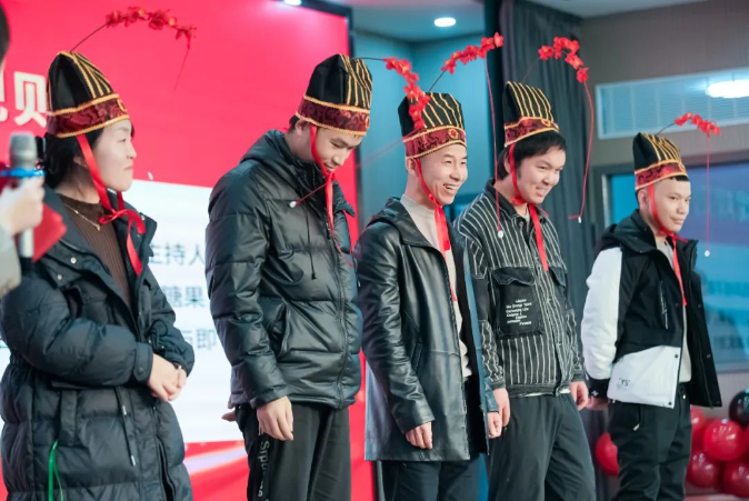 “雙童”人才年年有,今年特別多!看,猜猜這幾個被套里的人都是誰?跟隨著背景音樂的律動,生產(chǎn)部和銷售部的這四位人才代表們,來了一場熱舞,現(xiàn)場氣氛一下子被推向了高潮!搞怪的動作更是引得臺下觀眾們笑聲連連,掌聲不斷。